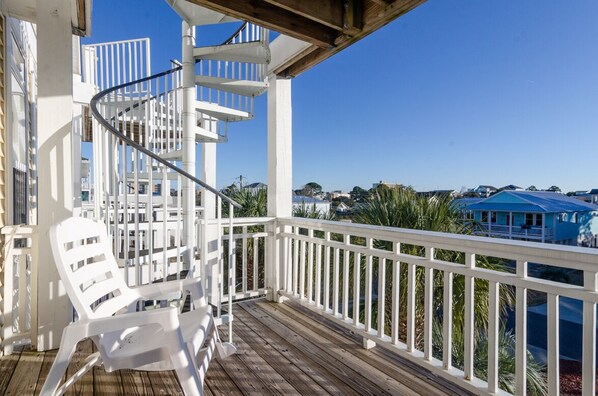 Do you love a Rooftop Deck? Us too. That's why we always look for a place like "Vitamin Sea" for a beach vacation. "Vitamin Sea" is a three bedroom/three bathroom duplex and spacious and comfortable in every way. It's just down the street from the ocean front Tiki Bar and Restaurant, yet quiet enough to relax and enjoy a little peace.