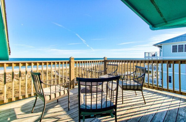 Experience a peaceful seaside escape in our top-floor, oceanfront condo with two bedrooms and a spacious deck offering panoramic views of the Atlantic. Just steps from the sand, you’ll enjoy direct access to a private beach walkway, pool, and all the beach essentials stocked in our gear closet, including chairs, an umbrella, and beach toys. After a day of sunshine and sea, take a short stroll to the Carolina Beach boardwalk, where you’ll find a vibrant scene with local dining, shopping, and entertainment.