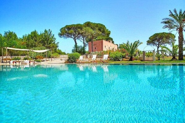 Villa Le Zille è un caratteristico e accogliente antico casale su due piani situato in posizione tranquilla, immerso nella campagna pugliese, per 16 persone. Da Villa Le Zille godrete di un'ammaliante vista del verde. Villa Le Zille è di circa 350 metri quadrati, e dispone di una piscina privata, un terrazzo privato, un patio privato, un giardino privato, aria condizionata (controllate la descrizione che segue per sapere in quali ambienti è disponibile), riscaldamento e accesso ad Internet WI-FI. Sarete a circa 4 km da Carpignano Salentino, dove troverete ristoranti, negozi e i trasporti pubblici. Troverete il ristorante più vicino a 700 metri, un negozio di alimentari a 2.5 km e la spiaggia più vicina (Spiaggia Alimini) a circa 10.5 km. Raggiungerete Villa Le Zille dall'area di parcheggio salendo lungo un percorso che comprende circa cinque gradini. Per soggiornare a Villa Le Zille è necessario avere un'auto, che potrete parcheggiare gratuitamente all'interno del cancello. Si occupano di Villa Le Zille due persone addette alla casa. Vi preghiamo gentilmente di notare. Il prezzo include: pulizia finale; parcheggio; biancheria da letto e da bagno.Disponibile su richiesta: culla. Da pagarsi in loco:elettricità secondo consumo EUR 0.30/kWh. Cauzione in contanti all'arrivo: EUR 1500 (restituita alla partenza). Piscina La piscina è larga 6 metri, lunga 18 metri, profonda da 80 centimetri a 1.4 metri. L'area è attrezzata con lettini prendisole e una doccia esterna, ed è in parte ombreggiata da tende. Dalla piscina godrete di un'ampia vista del verde. La piscina è aperta da inizio maggio fino a fine ottobre. Patio Il patio è di 220 metri quadrati. E' in parte ombreggiato da una tettoia e da una caratteristica pergola. E' attrezzato con un tavolo e sedie. Troverete anche un barbecue e un piccolo forno a legna. Dal patio godrete di una splendida vista del verde e del giardino. Giardino Il giardino è di 4000 metri quadrati, ed è in parte ombreggiato da alti alberi. Piano TerraZona giorno 1 Il pavimento della prima zona giorno è fatto di piastrelle in pietra. Il soffitto è a volta. L'arredamento è caldo ed accogliente, e comprende due divani. Nella zona giorno troverete anche l'angolo cottura. La cucina è dotata di sei fornelli a gas, un forno elettrico, un frigorifero con freezer, una lavastoviglie, un forno a microonde, la moka e un bollitore. Il tavolo da pranzo è per 16 persone. In questa stanza troverete un televisore. Dal soggiorno potrete accedere al patio tramite tre porte-finestra. La camera ha anche tre piccole finestre alte ad arco, ed è dotata di aria condizionata/riscaldamento. Camera da letto 1 con bagno Potrete accedere alla prima camera da letto dal soggiorno. La stanza ha un letto matrimoniale. C'è un antico camino in pietra, solo decorativo. L'arredamento comprende una poltrona e una panca in legno. Dalla camera da letto potrete accedere al giardino tramite una porta-finestra. La camera da letto è dotata di aria condizionata/riscaldamento. C'è un bagno in camera dotato di lavabo, wc, doccia e asciugacapelli. Camera da letto 2 con bagno Potrete accedere alla seconda camera da letto dal soggiorno. La stanza ha un letto matrimoniale. L'arredamento comprende una panca in legno e una scrivania. Dalla camera da letto potrete accedere al giardino tramite una porta-finestra. La camera da letto è dotata di aria condizionata/riscaldamento. C'è un bagno in camera piccolo e dotato di lavabo, wc e doccia. Camera da letto 3 - suite con bagno Questa suite è formata da tre ambienti collegati: una zona notte, una zona soggiorno e un bagno. Potrete accedere alla terza camera da letto dal patio tramite un accesso esterno. La stanza ha un letto matrimoniale. L'arredamento comprende un divano e due poltroncine, nonché un angolo cottura. La cucina è dotata di quattro fornelli a gas, un piccolo frigorifero senza freezer e la moka. C'è un tavolo che è per tre persone. Dalla camera da letto potrete accedere al patio e al giardino tramite due porte-finestra. La stanza ha anche una finestra. La camera da letto è dotata di aria condizionata/riscaldamento. C'è un bagno in camera dotato di lavabo, wc, doccia e asciugacapelli. Camera da letto 4 con bagno Potrete accedere alla quarta camera da letto dal patio tramite un accesso esterno. La stanza ha un letto matrimoniale. L'arredamento comprende una panca in legno, nonché un angolo cottura. La cucina è dotata di una piastra elettrica, un piccolo frigorifero senza freezer e la moka. La camera da letto è dotata di aria condizionata/riscaldamento. C'è un bagno in camera piccolo e dotato di lavabo, wc e doccia. Camera da letto 5 con bagno Potrete accedere alla quinta camera da letto dal patio tramite un accesso esterno. La stanza ha un letto matrimoniale, e c'è anche una finestra. La camera da letto è dotata di aria condizionata/riscaldamento. C'è un bagno in camera piccolo e dotato di lavabo, wc e doccia. Primo PianoTerrazzo Il terrazzo è di 45 metri quadrati. E' in parte ombreggiato da una pergola. E' attrezzato con tavoli, sedie e due lettini prendisole. Dal terrazzo godrete di un'ampia vista del verde e della piscina. Zona giorno 2 Potrete accedere alla seconda zona giorno attraverso un disimpegno. Il pavimento è fatto di piastrelle di cotto. Il soffitto è a volta a stella. L'arredamento è classico ed accogliente, e comprende un divano e due poltrone. C'è un grande camino in pietra, solo decorativo. Dal soggiorno potrete accedere al terrazzo, scendendo circa due scalini, tramite una porta-finestra. Il soggiorno è dotato di aria condizionata/riscaldamento. Zona giorno 3 Potrete accedere alla terza zona giorno attraverso un disimpegno. Il pavimento è fatto di piastrelle di cotto. Il soffitto è a volta a stella. L'arredamento è classico ed accogliente, e comprende un divano. Il tavolo da pranzo è per quattro persone. Dal soggiorno potrete accedere al terrazzo, scendendo circa due scalini, tramite una porta-finestra. 