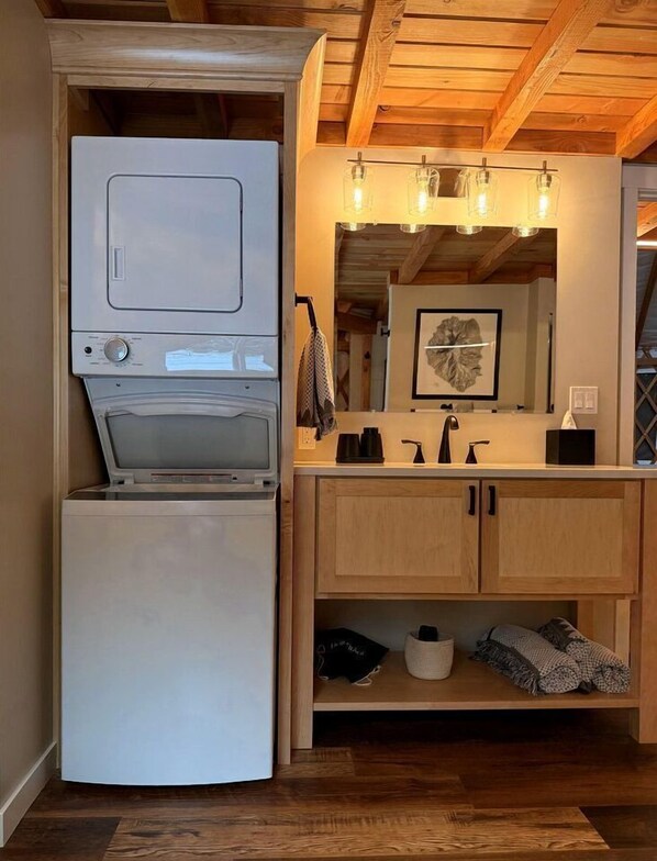 The Creekside yurts were constructed with luxury and comfort in mind, while also positioned to take the best advantage of the sights and sounds of the forest. Our spacious yurts boast over 700 square feet of peaceful interior living space, able to accommodate up to 4 guests in a private bedroom and cozy sleeping loft with 48 48-inch clear dome to watch the stars. You will also enjoy a full kitchen and stylish bathroom, complete with a stacked washer and dryer.