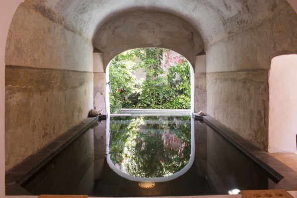 Up to 12 guests in 6 double bedrooms, all with en suite bathroom and A/C, will enjoy the magic city of Cartagena, living in a 300 year old Colonial house restored to top notch amenities. Conveniently located in the center of walled city, in a relaxing neighborhood but yet just steps away from Cartagena's bubbling day and night life.