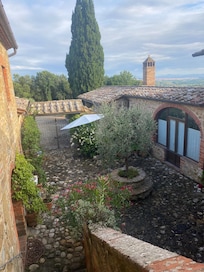 Casolare in borgo con piscina, giardino e vista panoramica sulle colline senesi