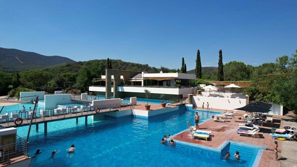 Tutte le piscine sono a vostra disposizione per uso comune. Piscina esterna (aperta da inizio aprile a metà ottobre, 40 m x 50 m, 1 m di profondità).