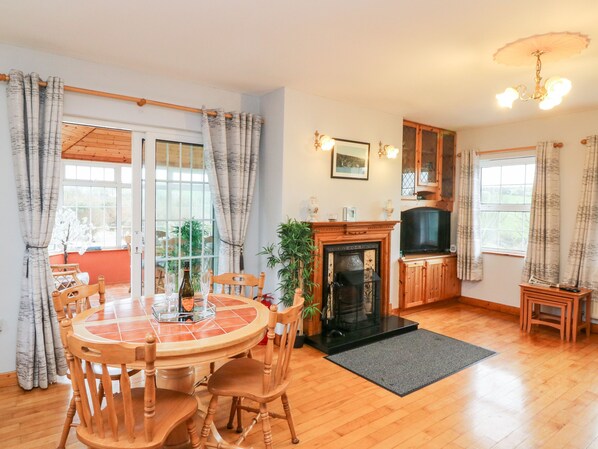 Amenities: Oil central heating with open fire. Electric oven and hob, microwave, fridge, freezer, washing machine, tumble dryer, dishwasher, TV with multi-channels, Netflix, WiFi, selection of books and games. Fuel and power inc. in rent Apr - Oct inclusive, €25 supplement Nov - Mar inclusive, payable direct to owner. Starter pack for fire inc. in rent. Bed linen and towels inc. in rent. Ample off road parking. Enclosed lawned garden to front. Enclosed patio to rear with furniture and BBQ. Sorry, no pets and no smoking. Shop and pub 2.5 miles. Beach 4 miles. Note: Babysitting available by arrangement.Please note : The charging of electric cars is with the consent of the owner