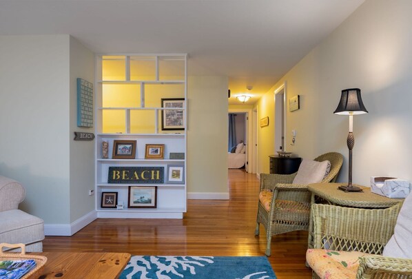 Prior to entering the home, you pass through a little gated area at the front with two Adirondack chairs. What a great spot to have your morning coffee as the sun rises and Cape Cod awakens!