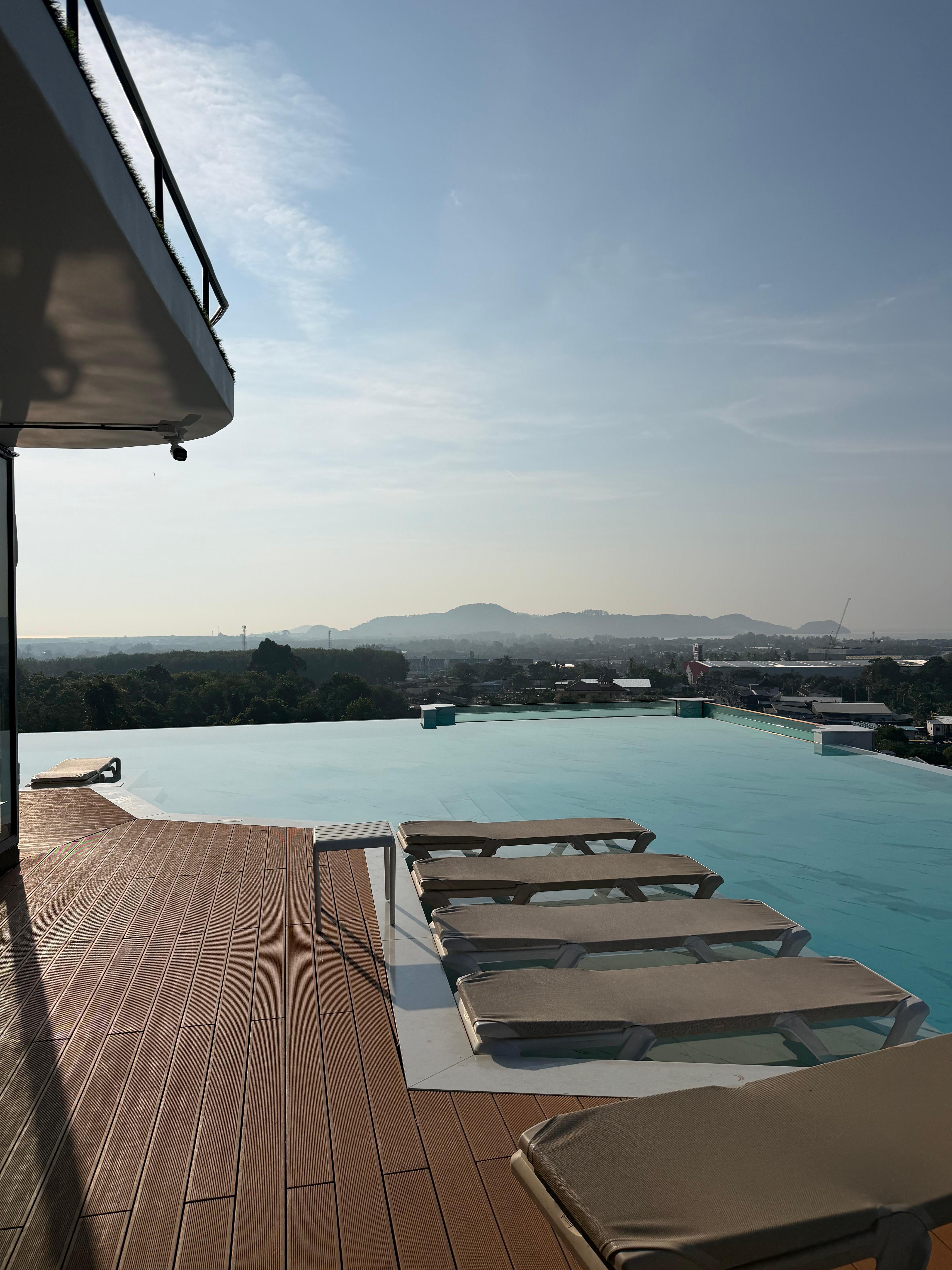 This hotel is relatively new — a little less than a year since it opened. The facilities are great, they are bigger than the other 2 Blue buildings. Sauna, steam room, and ice bath on the first floor. All worked incredibly and so useful after training. The infinity pool is on the rooftop with amazing views. My room was spacious as I picked the one with a couch in front of the bed. Everything worked great, and the room was cleaned every time I had the button set to clean for the next day. They did an excellent job cleaning and always left 2 water bottles. The food at the restaurant is decent but small portions and they charge you for tax and service. Overall though, this is a great place to stay.