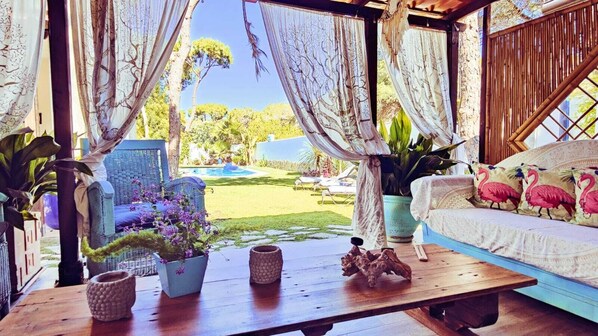 Nell'area esterna spiccano i fiori colorati e il giardino, che danno un aspetto allegro all'ambiente, la piscina e l'area chill out, che faranno la gioia di qualsiasi inquilino. Il parcheggio ha una capacità di due auto. (15/04/2026 - 01/10/2026).
