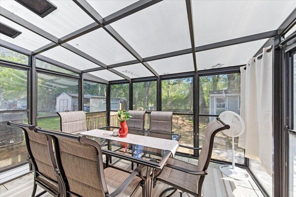The Chef in your family will adore the newly renovated Kitchen will all you need and then some! We just love the Metal Backsplash and Black Faucets/Accents - rustic yet modern at the same time. And you can slip out to the Sunroom and dine under the comfort of the shade trees - sooo relaxing. You’ll love grilling the Fresh Catch of the Day,, which with any luck, YOU caught! Not one to cook on Vacation? No worries - there are many great options just a hop, skip, or jump away. And don’t forget ending your day with a Sweet Treat from Mr. Whippy’s or The Island Creamery!
