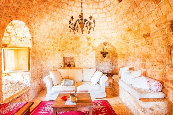 Trullo esclusivo ed in zona molto tranquilla con 8 coni composto da 8 stanze ben arredate: Ingresso, Cucina con accessori ed elettrodomestici, Sala da pranzo, Salotto con camino, camera da letto matrimoniale, camera da letto con due letti singoli, bagno, dependance con divano letto matrimoniale e bagno privato.