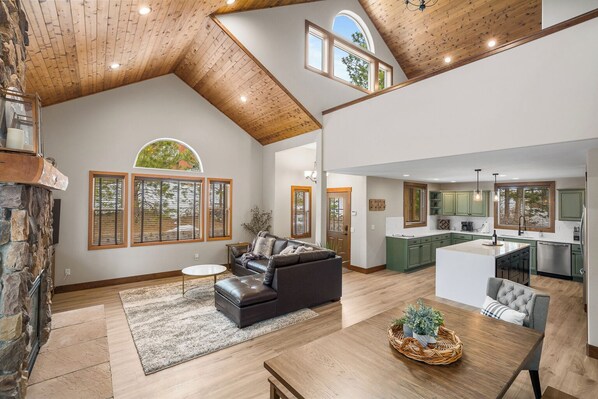 Want to rest and relax? We've got you. Stay back and unwind in the cozy great room with a blanket on the leather sectional next to the floor-to-ceiling fireplace. No worries here, as the kids have their own spaces, including not only the TV and abundance of games in the loft, but a new game room with shuffleboard table, pub table, extra refrigerator, foosball, ping-pong, electronic darts and pop-a-shot basketball.