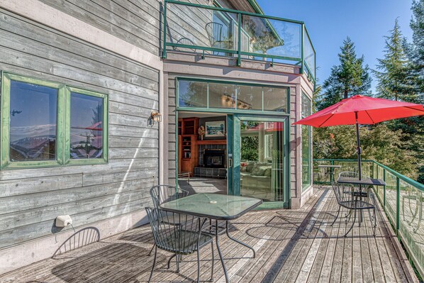 Family friendly water view escape with deck, games and garden views