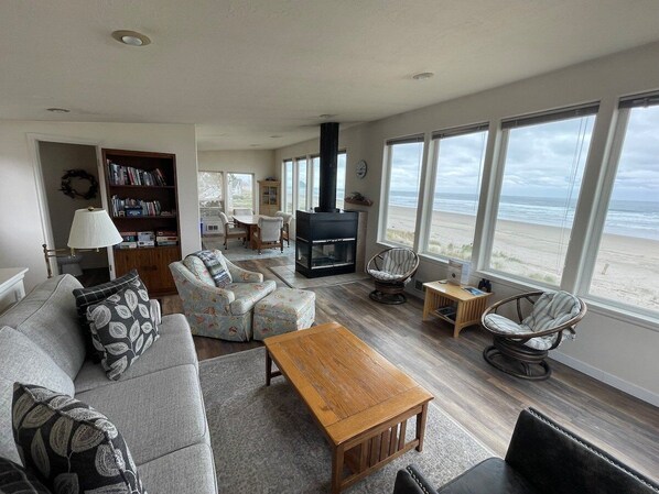 Beach front property with many windows, wrap around deck, & comfortable furniture. Property exactly as listed on line.