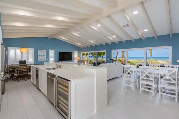 Kitchen - has tons of counter space, plenty of cabinets, and separate coffee bar area, six stools on the eat-in bar. Take in the view while you prepare a magnificent meal. Everything you can possibly think you will need is included in the kitchen including instant pot, crock pot, cook wear, baking and cooking dishes, blender, flat griddle, etc.