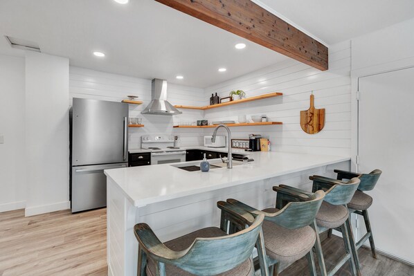 This fully remodeled home boasts two living areas and plenty of space to sleep 8! The cute backyard is fenced in and you will love spending warm nights playing games and enjoying a truly quiet family vacation living like a local. A new addition remodel was just completed Spring 2025 adding an additional bedroom and bathroom.