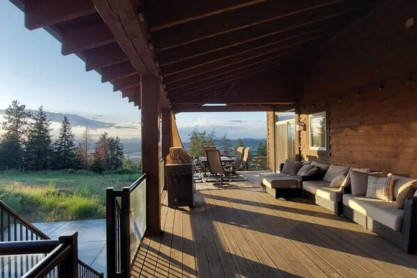About the Grand Getaway at the Green Bluff Getaway- This 4 bedroom 3 bath executive home is situated right in the heart of Green Bluff on a gated 10 acre property between several beautiful wedding venues and family farms. Incredible views, a gourmet kitchen, sunken living room and foyer that surround a towering rock fireplace, large master bedroom with en suite bath, theater room, fitness room and 3 guest rooms and spacious decks make for an outstanding place to gather and entertain your group The whole home and garage, decks immediate yards and parking areas