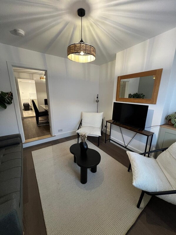 Well-located 2-bedroom, 2.5-bathroom home in Colchester, sleeping up to 5. Flexible setup with zip-link beds (2 super kings or 4 singles) plus a sofa bed. Modern interior, comfortable lounge, fast WiFi, and fully fitted kitchen. Includes two showers and a bath. Close to army barracks and Colchester Town Station, with free nearby parking and easy self check-in.