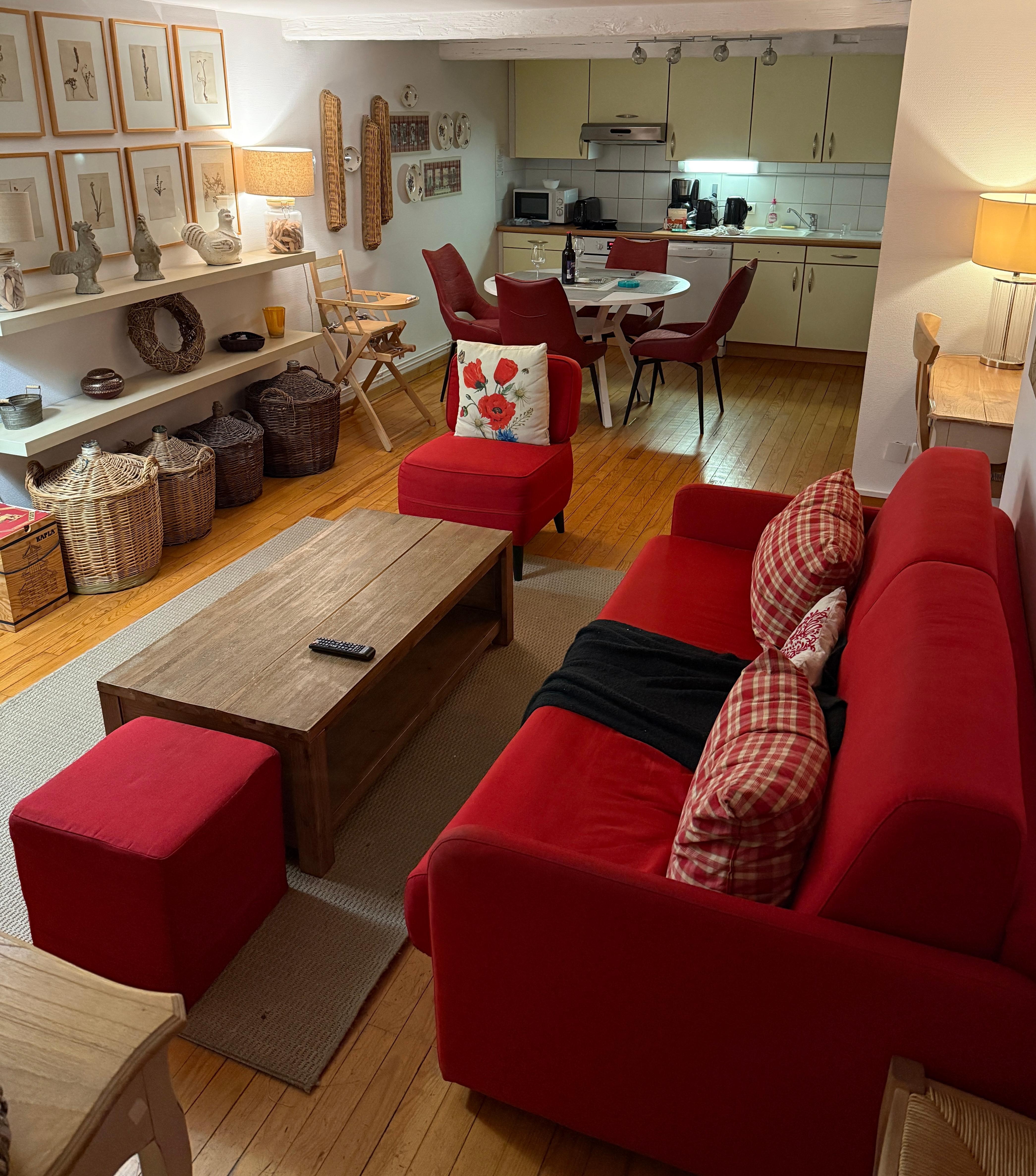 🥨 The Marzolff apartment is perfect for a stay with family or friends in the heart of downtown Colmar. With its 79 m², it offers a comfortable and well-equipped space. Located near the main attractions, you will easily enjoy the half-timbered houses, Little Venice and local restaurants. The apartment is bright and combines traditional charm with modern touches for a pleasant stay.