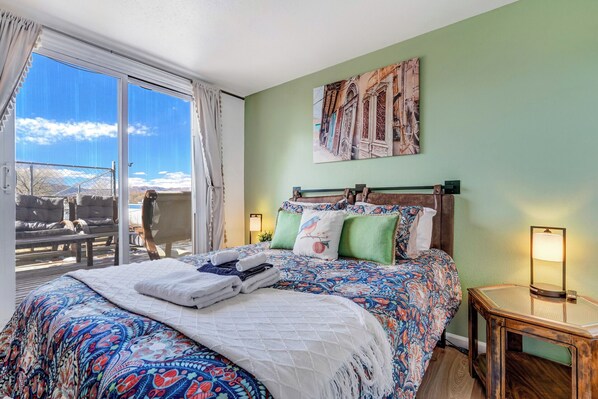 The unit has a patio, a fenced yard for your dogs, and is business travel ready.