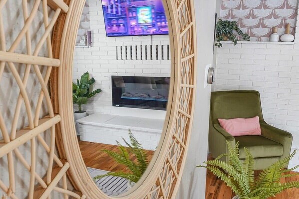 Relax on the Queen pull-out sofa and enjoy your favorite shows on the Smart TV. Stay warm with the cozy electric fireplace. Whether you're reading a book or spending quality time with loved ones, our living room offers the perfect setting.