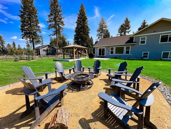 Fire pit, grill, and outdoor games