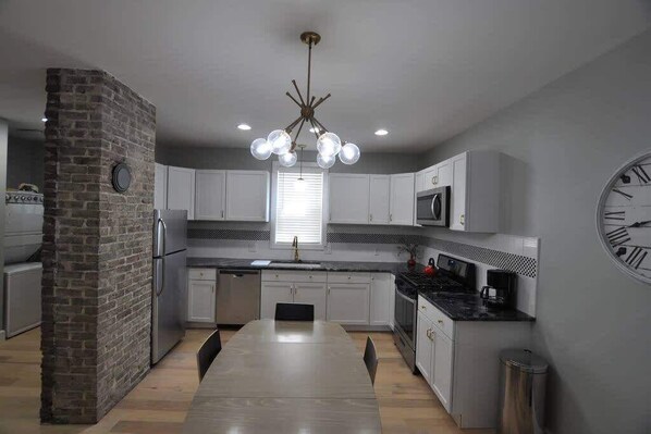 Our house has had a beautiful renovation, and has been custom designed to be a perfect place to stay for your trip in Columbus. Downstairs has a beautiful kitchen with dinning space, and open to the living room. Just of the kitchen is the laundry and half bathroom. Upstairs has 3 bedrooms, and 2 full bathrooms. The spacious master suite has an en-suite bathroom, and loveseat. There is also a bedroom with a full, and a bedroom with a twin bed.