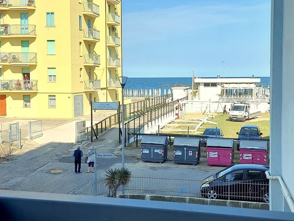 Questo appartamento bilocale si trova al primo piano di un condominio con due ascensori, a due passi dalla spiaggia, in centro ma appena al di fuori dell'area pedonale estiva, quindi sempre facilmente accessibile.