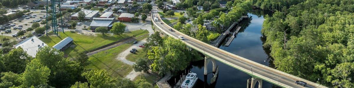 Scopri le rustiche costruzioni di legno, i porticcioli, le aree da pic-nic e i campi da gioco in una passeggiata lungo le meravigliose rive del fiume Waccamaw.