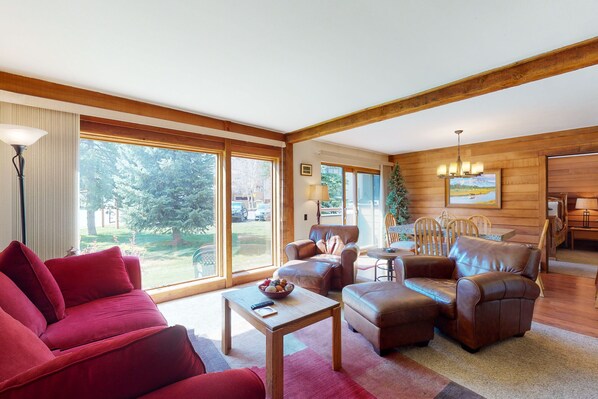 You're going to love enjoying your morning coffee on the deck while watching the gondolas sliding past this amazing mountainside resort condo. Inside, the home is open and spacious with a burnished wood interior, a wood-burning fireplace, and luxurious Italian leather furniture. When you're home from a refreshing afternoon of ski runs, stretch out in the living room to enjoy a good DVD movie on the large mounted flatscreen TV. You'll be just 200 yards from the Super Bee gondola, so not only do you have all the fresh skiing of Copper Mountain right at your fingertips, but you can enjoy al-fresco meals on the deck while watching skiers bustling about for a true apres-ski dining experience. You'll love warming up in the shared hot tub and the community sauna is a great place to enjoy a little personal care. The suite's full kitchen boasts beautiful countertops, cookware, and stainless steel appliances, and you'll even have a dishwasher available, so you'll never need to worry about those dirty dishes.
