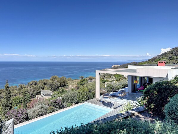 Superb villa, sunset sea view, heated pool, 4 bedrooms