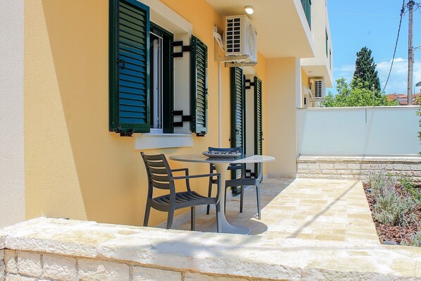 Each of our beautifully decorated apartments is fully equipped with modern amenities for a stress-free stay. They feature a double bed in one bedroom and a second bedroom with a double bed that can be easily separated into two single ones to accommodate your needs. The spacious bathroom includes a shower, and the modern kitchen is fully equipped with a fridge and stove, making it easy to prepare your own meals.