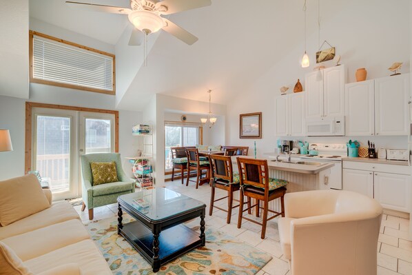 Anchors Aweigh features an open upstairs floor plan, a fully equipped kitchen with new stainless steel kitchen appliances and breakfast bar seating for 2, and dining room seating. Catch a movie or your favorite TV show on the smart television in the living room. This home also features 1 King, 1 Queen, 2 Twins, and a sleeper sofa so everyone in your group will have a comfy place to lay their head at the end of the day. Anchors Aweigh is the best Townhome choice for your next Corolla vacation so book your stay now!