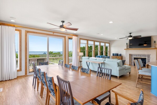 Fully renovated in 2015 and impeccably maintained, this unique waterfront home will feel like a breath of fresh air as soon as you walk through the door. The sound is literally in your backyard and guests can use the shared pier for fishing, crabbing or launching kayaks. An open-concept layout and a wall of west-facing windows in the great room take full advantage of the unobstructed water views and stunning sunsets. The dining area opens up onto a soundfront sun deck that overlooks the backyard. In addition to your own private swimming pool, this thoughtfully designed outdoor oasis includes a poolside gazebo with outdoor dining set, plenty of room for lounging in the sun, and convenient access to the pier.