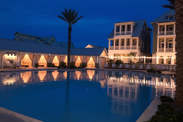 Enjoy access to incredible amenities, including two elegant resort-style pools that are heated during our winter season. A designated area at the beach with food services and air-conditioned bathrooms. During the summer, poolside cabanas, golf carts, beach chairs, and umbrellas are available to rent via Guest Services.