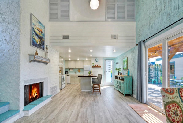 Reel Time Beach House will steal your heart with its vintage feel of Port A but with all of the updates and modern conveniences you'll expect for your perfect Port Aransas vacation. You'll walk into a large living, dining and kitchen area for a spacious, open concept. What a great place to relax or gather with friends and family to watch TV, play cards or games, dine at the dining table or enjoy snacks at the breakfast bar.
