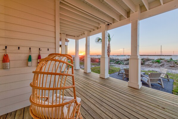 As soon as you step inside this stunning four-bedroom, three-and-a-half-bathroom home, you'll find open living spaces and great natural light flooding the home. Find yourself sinking into the plush and comfortable living room furnishings. The gas fireplace is a nice touch for chilly evenings. Or catch a movie on the 75-inch Smart flat-screen TV after a fun-filled day of beach adventures. If you prefer homecooked meals to dining out, you'll find a gourmet kitchen with a double convection oven with gas burners. All major appliances are provided, along with major kitchen gadgets, cookware, dinnerware, and utensils, making anything from toasting a morning bagel to preparing a full-course dinner easy. Spend time on the patio each evening roasting marshmallows on the fire pit, or simply enjoy each other's company and chat about the adventures you're having.