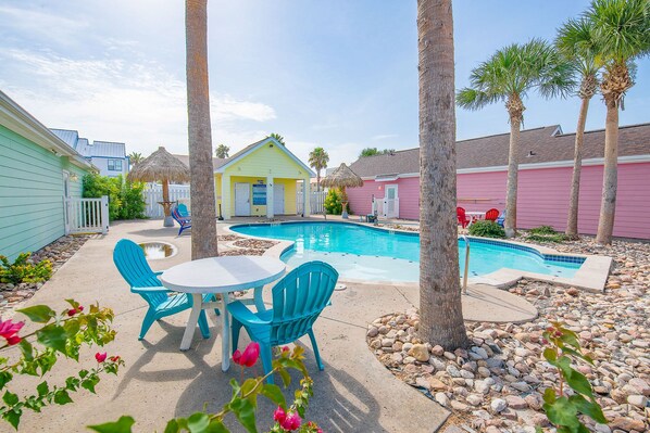 Spacious home located in the Marquesas Complex within 5 minutes of the beach! Resort Style Community Pool. Close to shopping, restaurants, coffee shops, & entertainment. Located near HEB, CVS, Golf Course, & Fishing Piers. The home is fully stocked, Kitchen has everything you need, Washer/Dryer, Fast Wifi, 2 Bedrooms, & "Murphy Bed" in Living Room. Easily rent a golf cart to explore all the fun places close by!
