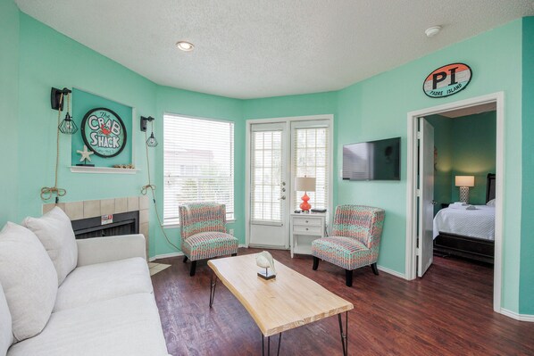 Una volta varcato la soglia, godrai di un condominio completamente rinnovato che offre una zona soggiorno, pranzo e cucina aperta che è perfetta per riunire tutti mentre ti godi la vacanza. Troverai anche una TV a schermo piatto, una cucina completamente attrezzata, un letto queen size e un divano letto queen size con materasso memory foam. L'interno è fantastico ma probabilmente vorrai trascorrere le tue serate nel patio a guardare il Lago Padre.