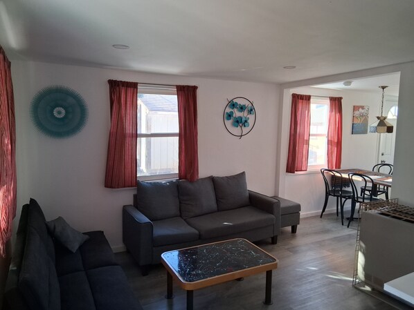 After a day of activities or exploring the region, you will be glad to retire to the popular Adobe CoCo. It has authentic and artful touches, but has also been skillfully updated to provide you with all the modern amenities. It will easily sleep 5 people. There are two bedrooms each featuring a queen-size bed, ceiling fan, and nightstands, and there is a sleeper sofa in the living room. There is a large kitchen for all of your cooking needs. The living area and kitchen spill into one another, making it easy to visit with one another. The full bathroom with shower/tub combination was recently renovated. And for your convenience, you’ll find a washer and dryer in the laundry room. This property boasts an outdoor patio that is ideal for your morning cup of coffee or an evening glass of wine! The property has a fully fenced in yard and a private driveway for two cars, in addition to on street parking. Best of all, your dog is welcome to join you!