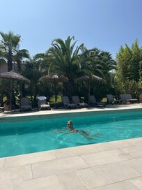 Wir haben unseren Aufenthalt sehr genossen – vor allem die Gartenanlage ist wirklich wunderschön und liebevoll gepflegt. Der Pool liegt traumhaft eingebettet in das Grün, und man merkt sofort, dass hier täglich gearbeitet wird. Ein großes Lob an den Gärtner, dessen Einsatz wirklich sichtbar ist!Die Ferienwohnung selbst ist zwar schon etwas in die Jahre gekommen, war aber sauber und funktional. Ein paar Ameisen hatten wir in der Wohnung, was im Süden allerdings keine Seltenheit ist und uns nicht weiter gestört hat.Je nach Windrichtung hört man ab und zu Flugzeuge, die über das Haus fliegen. Für uns war das nicht störend, aber man sollte es wissen.Die Lage ist etwas abseits, was bedeutet, dass man für viele Ausflüge oder Einkäufe immer etwas Fahrzeit einplanen muss. Dafür hat man hier seine Ruhe – und genau das haben wir gesucht und gefunden.Insgesamt ein erholsamer Aufenthalt mit kleinen Abstrichen, aber viel Charme. Wir würden wiederkommen!