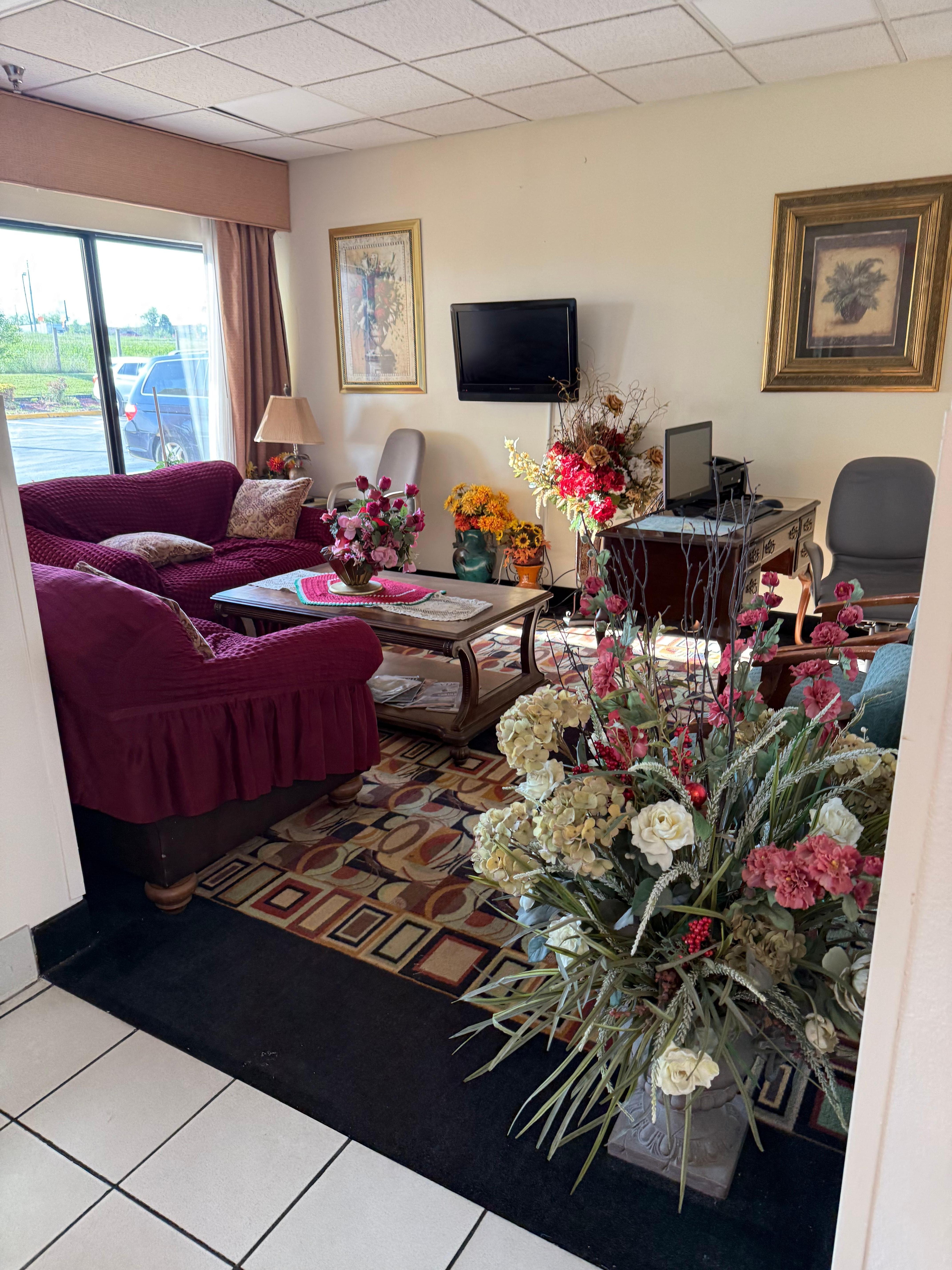 The hotel is old and is in need of repairs but more cosmetic things than anything. Also if you want to go to the pool or the hot tub you have to ask so they can turn on the lights because they don't leave them on all the time. It was advertised as nothing like their breakfast buffet in the area. That's probably true because it really wasn't a breakfast buffet. They had two juices and they were out of orange. They had pre-made little egg things with sausage, patties and biscuits that looked not new or fresh.. they had little mini chocolate donuts that you had to fight to get in the display case because they were put in backwards and I guess that's enough for now. The man that took our reservations was very kind and personable.