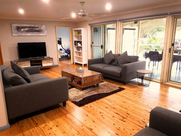 Siediti sul balcone di notte e cattura la splendida brezza marina e ascolta il suono rilassante delle onde che si infrangono sulle rive di Warrain Beach. E durante i giorni, attraversare la strada per la pista da spiaggia che conduce direttamente alla spiaggia, ca. 50m a piedi. per un tuffo veloce, poi torna ai comfort della casa.