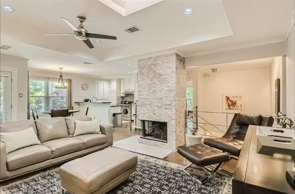 This beautifully designed two-story luxury townhome offers comfort and convenience, making it the perfect choice for travelers seeking the best Dallas has to offer. With two spacious bedrooms, a full-size washer and dryer, and a large living area, this home provides everything needed for a relaxing and enjoyable stay.