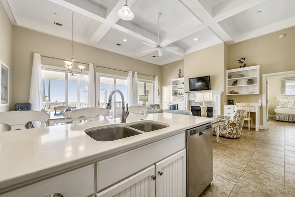 The interior of the cottage is open and spacious with TWO living/dining/kitchen areas that are great for family and friend time. The cottage includes Cable TV and flat screen TVs in the living room and bedrooms. WIFI is Free during your stay. The kitchens are fully equipped with full size stainless steel appliances, garbage disposal, dishwasher, and a stocked Coffee/Tea, making meal preparation easy for you and your family throughout your stay - even Holidays!