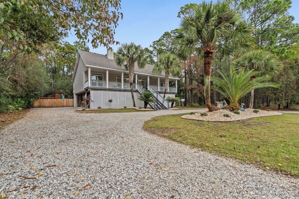 Unit 066 - Bailey's Bliss - This charming Creole-style 3-bedroom, 2-bathroom home is the perfect retreat for your next Dauphin Island vacation. Nestled conveniently off of Bienville Blvd, you'll find yourself in close proximity to a variety of attractions and activities, making it an ideal destination for your family vacation. As you approach the house, you'll be greeted by the warm and inviting large front porch, perfect for sipping your morning coffee or enjoying the Island with a cool beverage in hand.