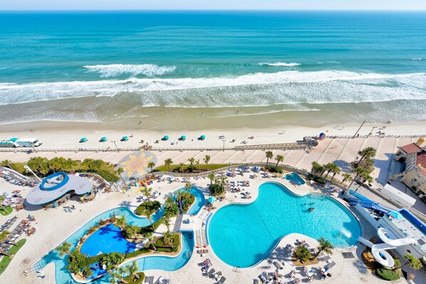 Lazy river, slides & multiple pools (indoor + outdoor)