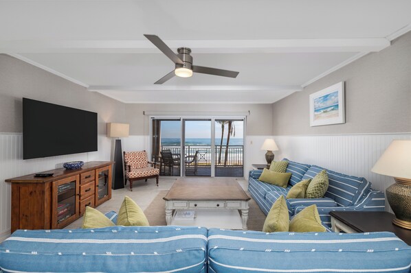 Le unità qui sono tutte o 3 camere da letto / 3 bagni o 2 camere da letto / 2 bagni condomini con cucine moderne e completamente attrezzate e bagni. Costruito nel 1973 con un ampio rinnovamento nel 2003, Sandpiper offre agli ospiti il massimo della vita di fronte all'oceano. Sandpiper deck sull'oceano ha due piscine per adulti, due piscine per bambini, putting green oceanfront, tennis e shuffle board court. Internet wireless GRATUITO e cavo standard. Ogni unità ha ampi balconi con una vista favolosa.