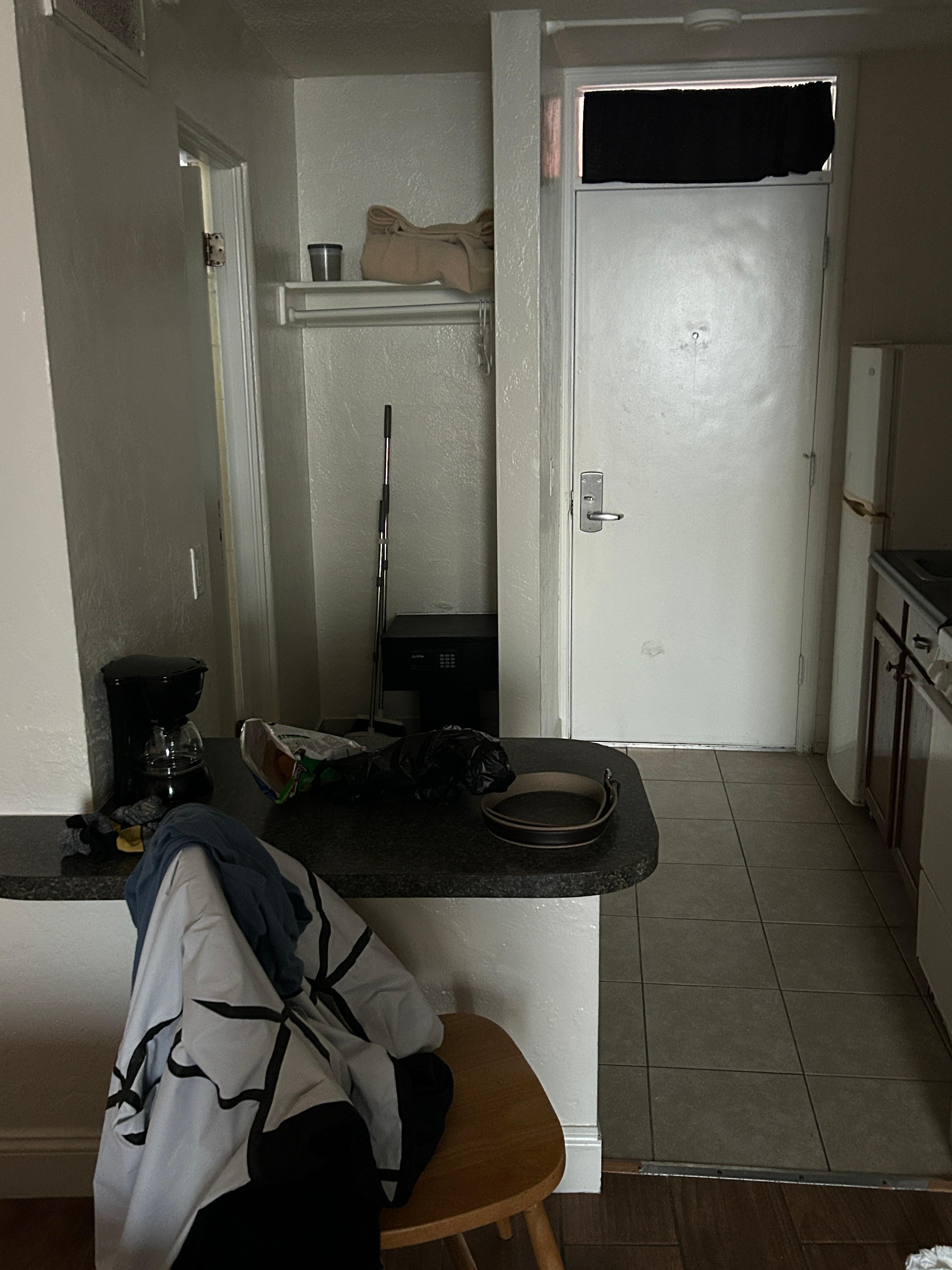 Large room older property has kitchen for those needing that. Over all good