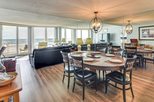 Classic beach memories await at this Daytona Beach vacation rental! 'Paradise Palms Oceanfront' offers a modern interior, stunning views, and family-friendly amenities such as board games and in-unit laundry. Enjoy morning strolls along the sand before spending the day splashing in the pool or exploring Daytona Boardwalk Amusements and the Main Street Pier. Trade the screen for the shoreline and book your escape today!