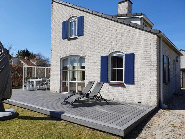 Il giardino intorno alla casa si trova nel sud / sud-ovest. Pertanto, si può godere il sole tutto il giorno. Naturalmente si trova intorno alla casa e zone d'ombra a sufficienza.