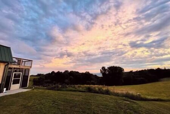 This peaceful cabin barn sits on 13 acres overlooking the bluffs and great Mississippi river. The main floor is equipped with a state of the art kitchen including stainless steel appliances and large island, a full bath with large shower, spacious living room with a big comfy sectional and 55” Amazon Fire TV, and a screened in porch providing an additional dining space.